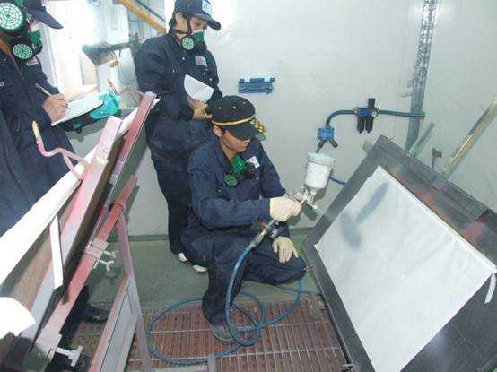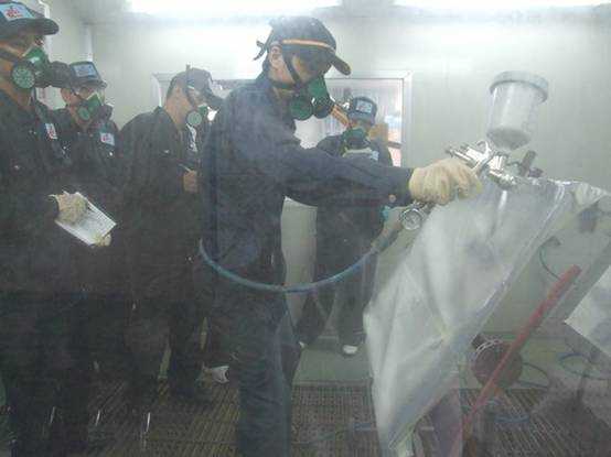 宋老師演示使用噴槍作噴涂測試