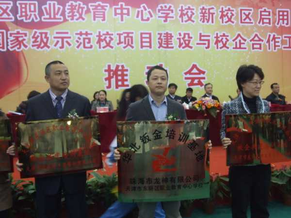 最后,我司蘇總為天津東麗區(qū)職業(yè)教育中心學(xué)校辦發(fā)“華東鈑金培訓(xùn)基地”牌匾。