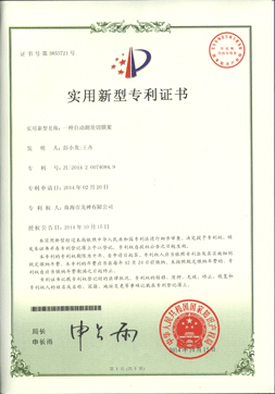 一種自動測量切膜架專利證書 |