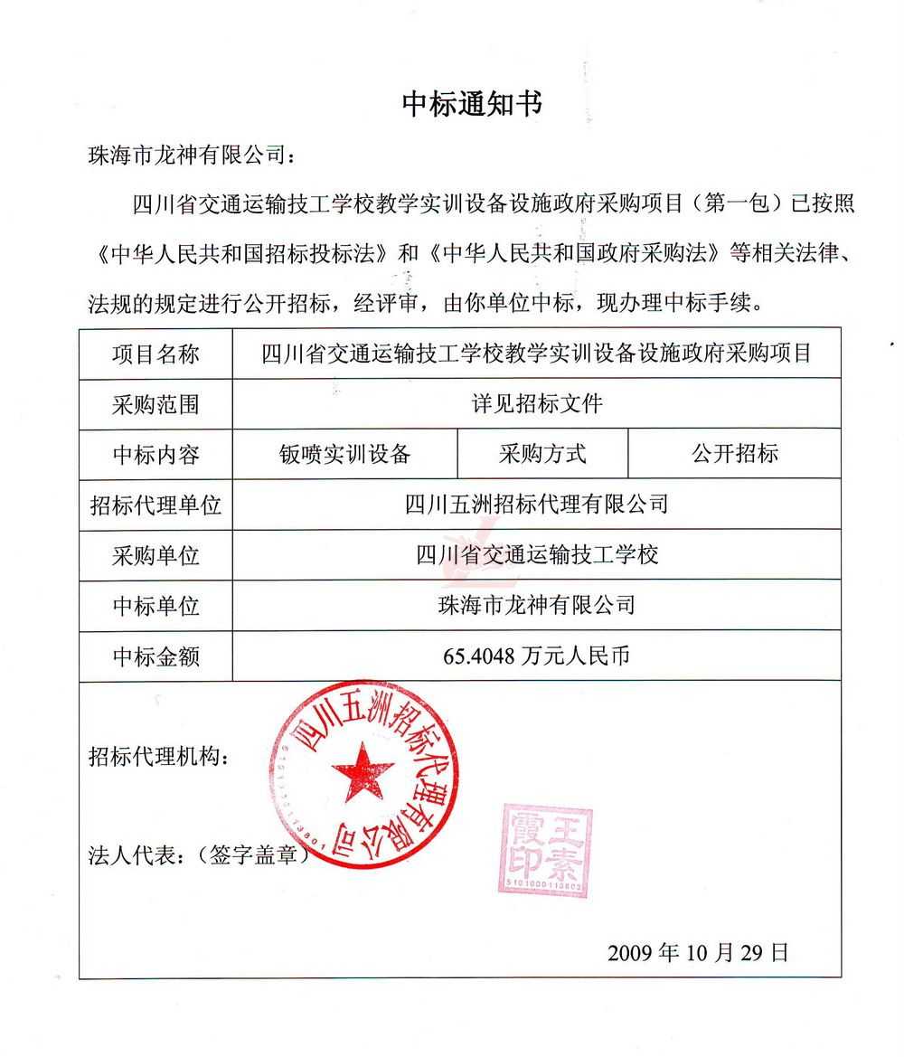 [新聞中心]珠海市龍神有限公司經(jīng)過(guò)長(zhǎng)時(shí)間的籌備已成功中得四川省交通運(yùn)輸技工學(xué)校教學(xué)實(shí)訓(xùn)設(shè)備設(shè)施政府采購(gòu)項(xiàng)目標(biāo),這是珠海市龍神有限公司一種實(shí)力的表現(xiàn)。說(shuō)明了珠海龍神的品牌在不斷的加強(qiáng)、深化。